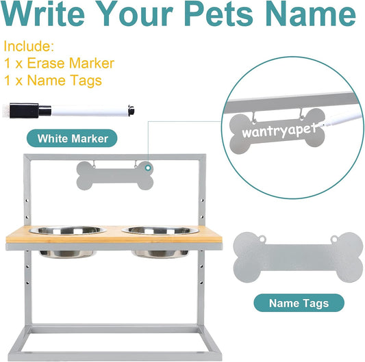 Large Elevated Dog Bowls Feeder - Adjustable to 6 Heights, anti Rust Frame Raised Pet Feeder for Big Dogs, Steel Food and Water Bowls, Grey